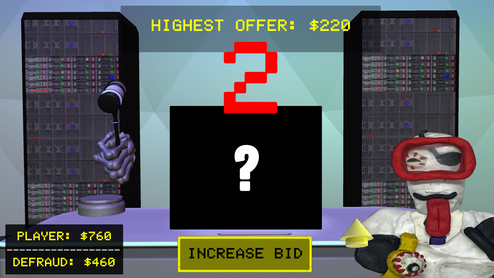 In addition to the classic auction level, this game introduces a new RPG-style boss battle, multiple interactive 3D areas to explore, and four new fun bonus games to play, hosted by deFraud's colleague, Dr. Liquothol!